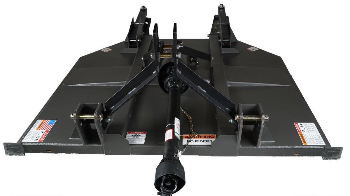 These Heavy-Duty Cutters are designed for heavy-duty applications such as weeds, grass, and brush up to 3” diameter. These cutters are designed to work with 47 to 100 hp tractors, and are available in 72” and 84” widths. These cutters use a single spindle with two free-swinging blades, which reduce the shock of impact when a stationary object is contacted. A slip clutch protects the gearbox and driveline from damage. Standard equipment includes driveline shields and clutch shields. Front and rear chain and rubber discharge shields are available.