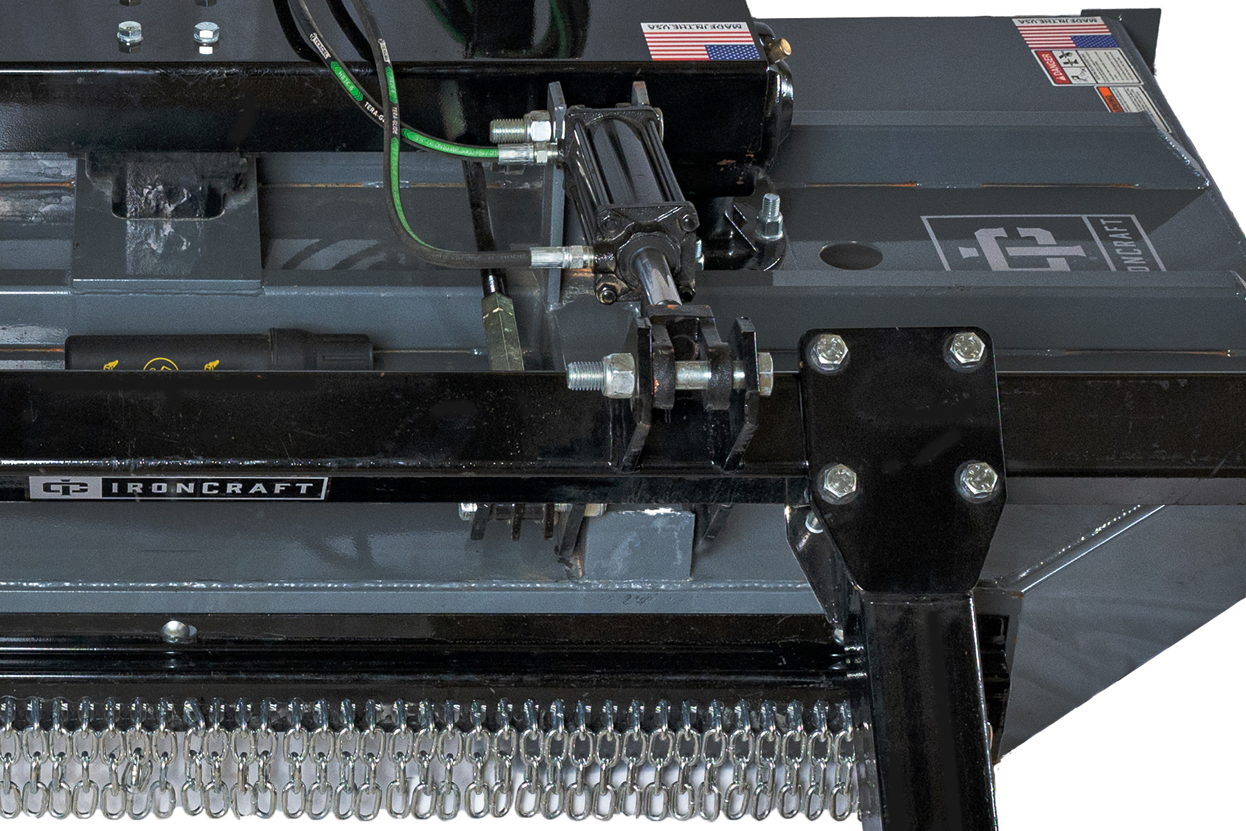 These Heavy-Duty Dual Spindle Cutters are designed for heavy-duty applications such as weeds, grass, and brush up to 3” diameter. These cutters are designed to work with 42 or 52 minimum hp tractors, and are available in 94” and 117” widths. The cutter uses dual spindles with two free-swinging blades each, which reduce the shock of impact when a stationary object is contacted. A slip clutch and dual shock couplers protect the gearboxes and drivelines from damage.