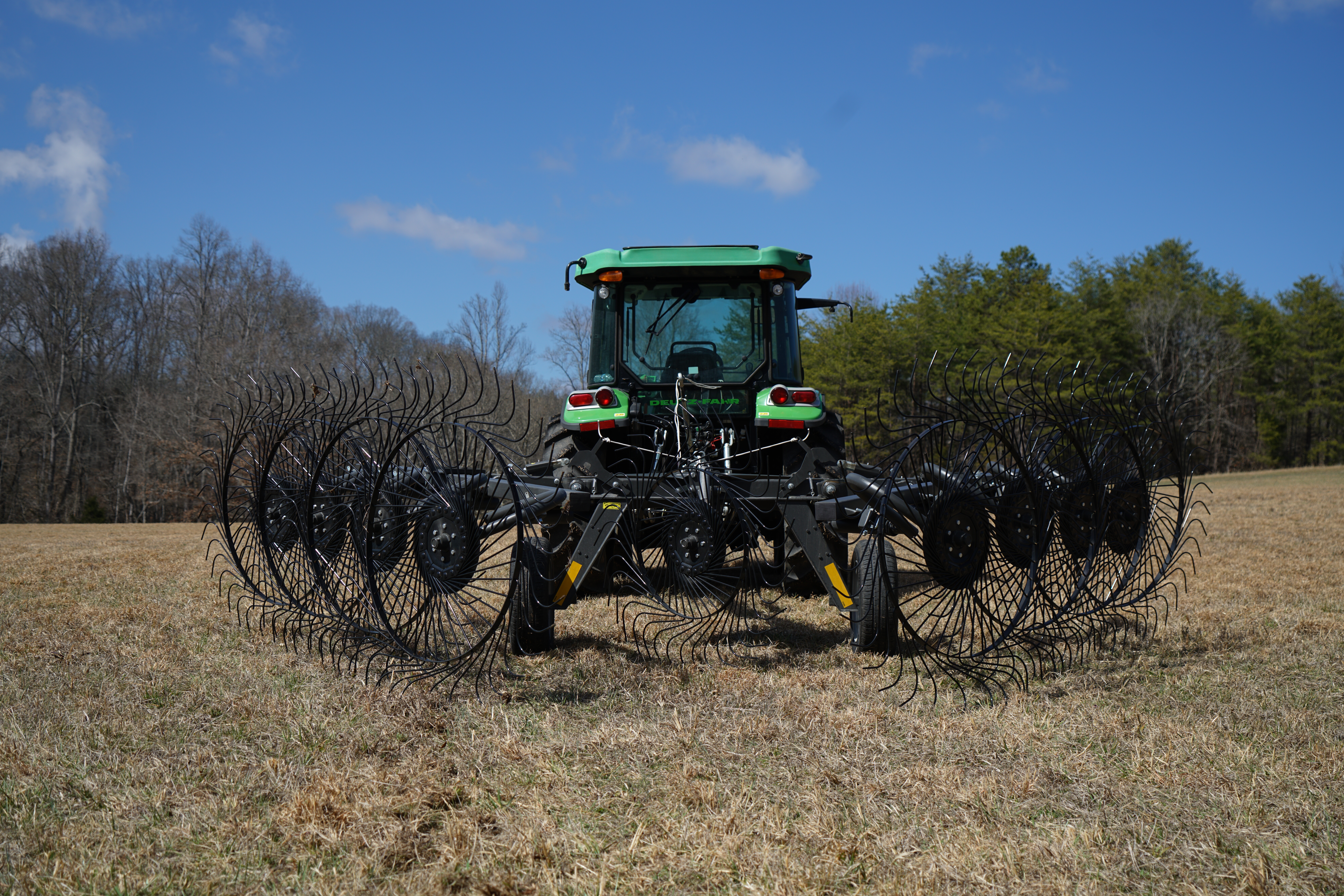 The IronCraft pull-type rakes offer versatility on different terrains with simple windrow adjustments and independent rake wheel suspension. Requiring low maintenance and no PTO, they are the perfect choice for a wheel rake!