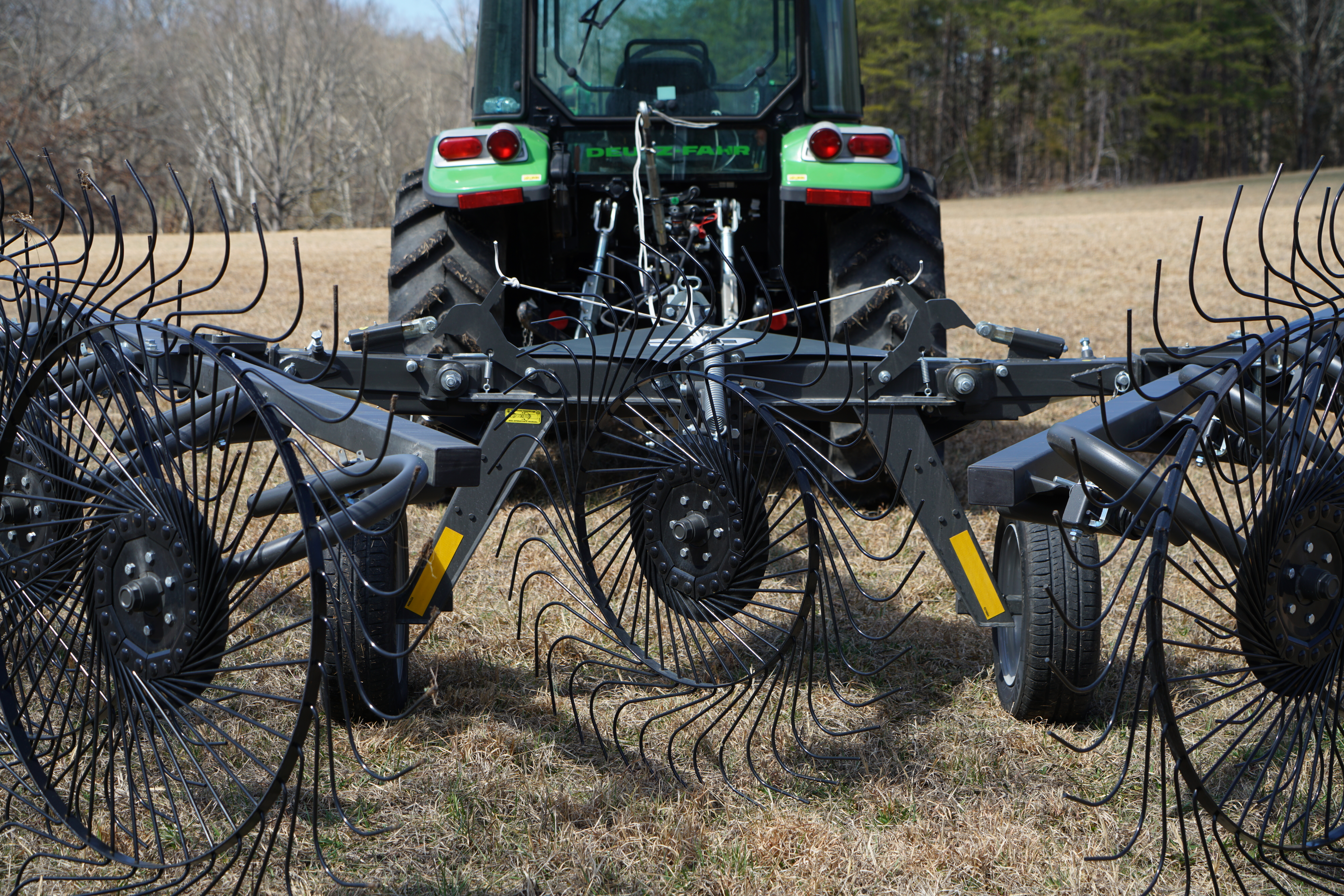 - Independent rake wheels equipped with a torsion spring